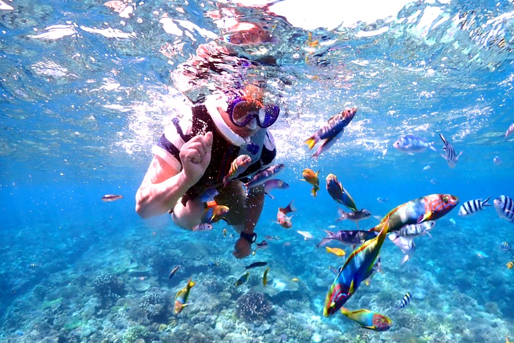 沖縄の海のカラフルな魚やサンゴ、イソギンチャクをダイビングで楽しみませんか?ライセンスを持っていなくてもシュノーケリングで楽しめます。可愛い魚たちを観察して癒されましょう!
