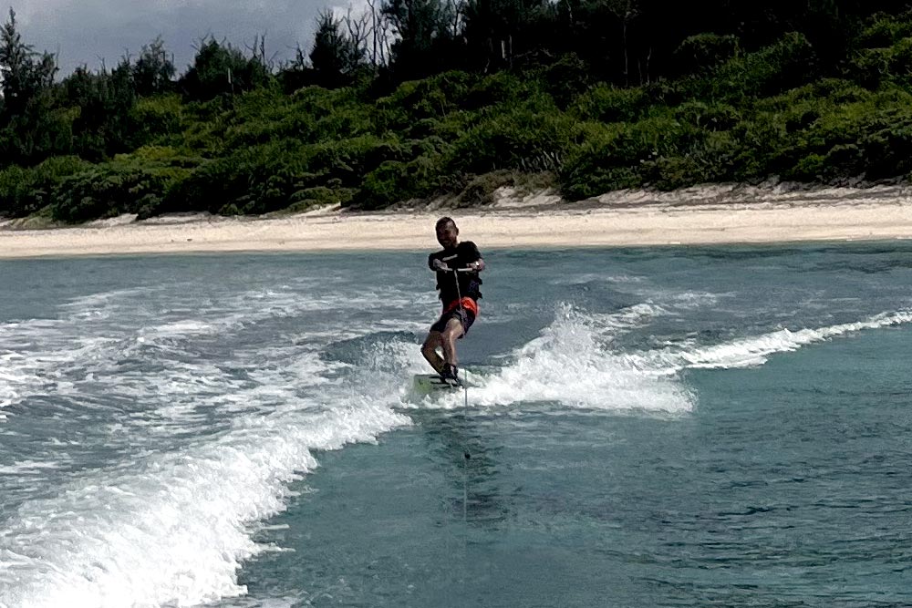 モーターボートで引っ張ってもらって水面を滑走!